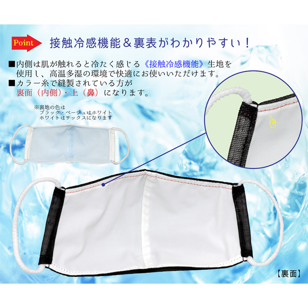 表地には抗菌防臭・制菌性の生地使用、裏地は接触冷感生地を使用し、ヒンヤリ快適。