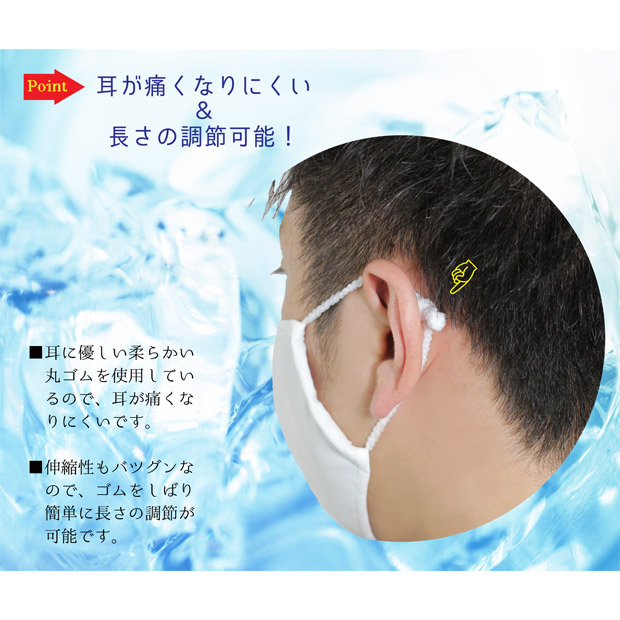 耳が痛くなりにくい、優しい丸ゴム使用。